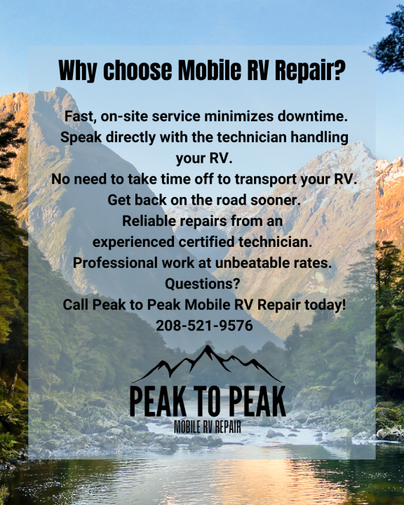 All RV related services that come to you instead of having to take time out of your day to take it to a shop and then to pick it up.