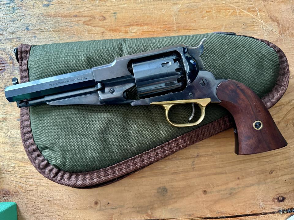 This is a Pietta 1858 Remington New Model Army (Sheriff 5.5inch) black powder pistol in 44 cal. Ive owned it for about 15 years now and really haven't given it the use it deserves. I may have some round balls somewhere I'll look for and include with the purchase. Shoots well and is in excellent condition.