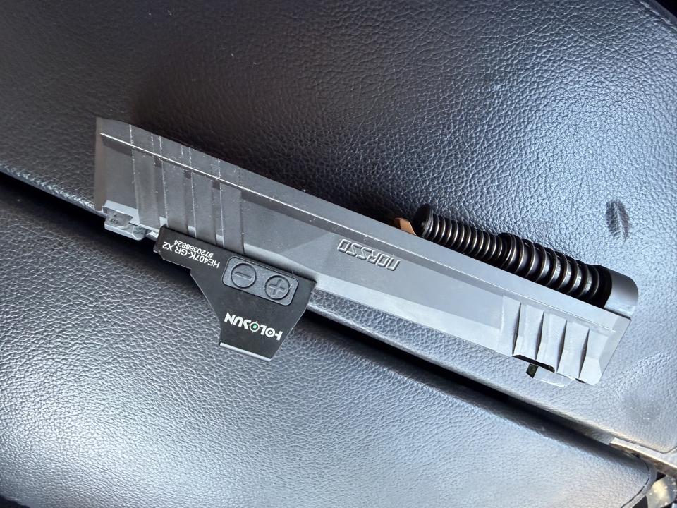 Firearms & Hunting Put this together a few months ago. Shoots very flat for a 3.1inch barrel. 300ish rounds though it. Complete slide. If you’d like it without the Holosun I’d let it go for 550. Selling to fund a new build. Log in or register to post comments