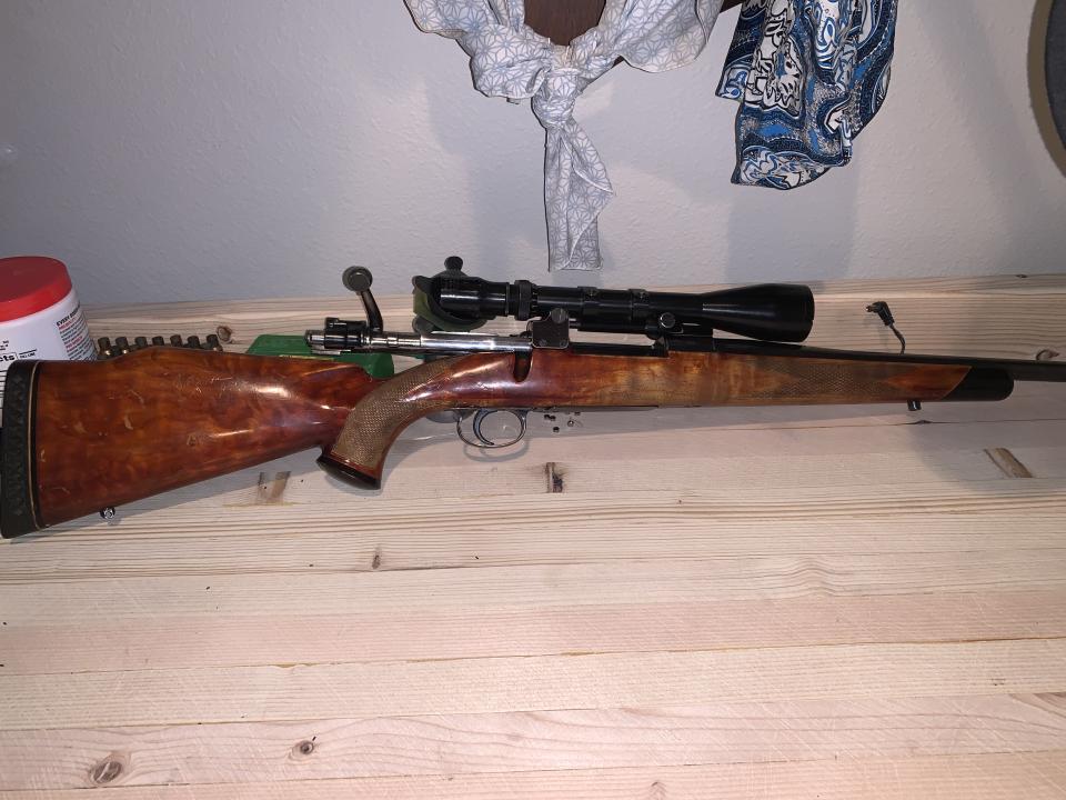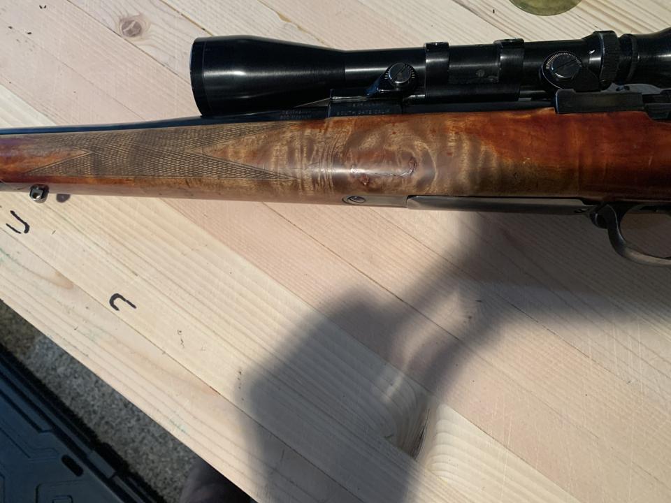 For sale is my Pre Mark V Weatherby rifle chambered in .300 Weatherby Magnum. This rifle was one of the first rifles ever made by Roy Weatherby in the late 40's and early 50's. The serial number is 329 which means it was manufactured in 1950. It is built on an FN Mauser action, has a Jeager trigger, has a 24" barrel, and is topped with a Bausch and Lomb scope/scope mounts. The wood has some wear around the front of the rifle where it was handled as does the blueing in that area. This is a beautiful rifle, the only reason I am selling is because I am downsizing my rifle collection and selling guns I no longer shoot. I am asking $2000 OBO, can accept partial or full trades for a thermal depending on what you have.