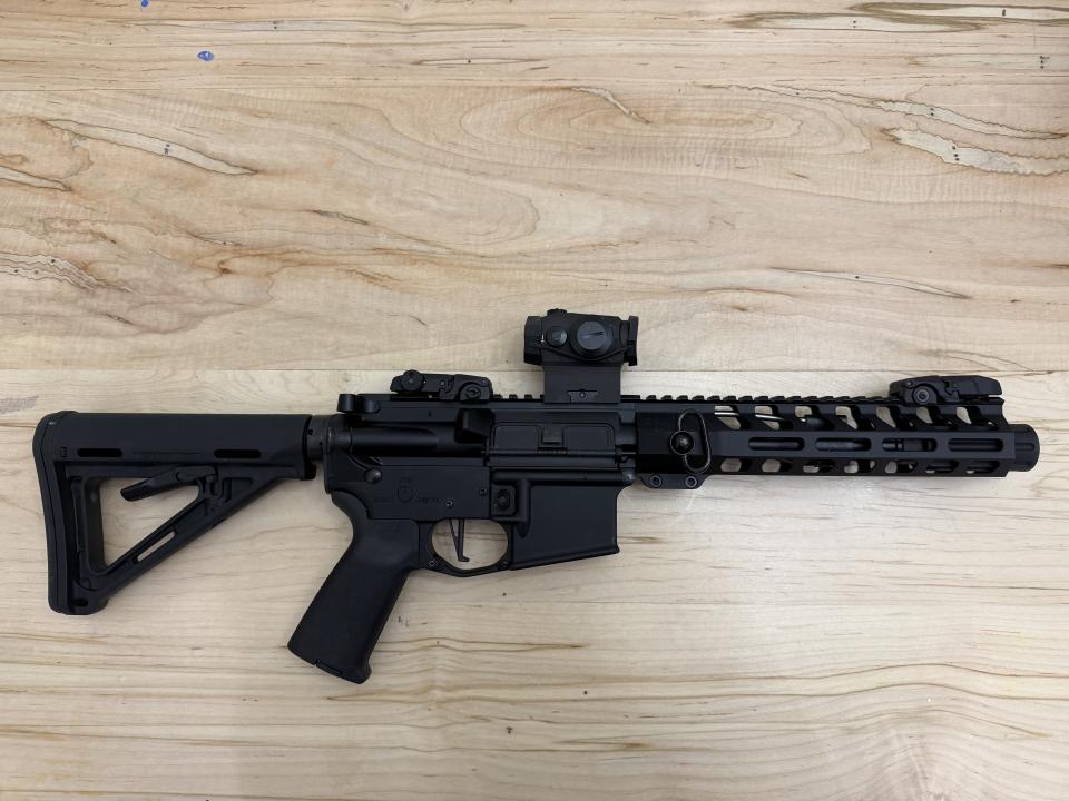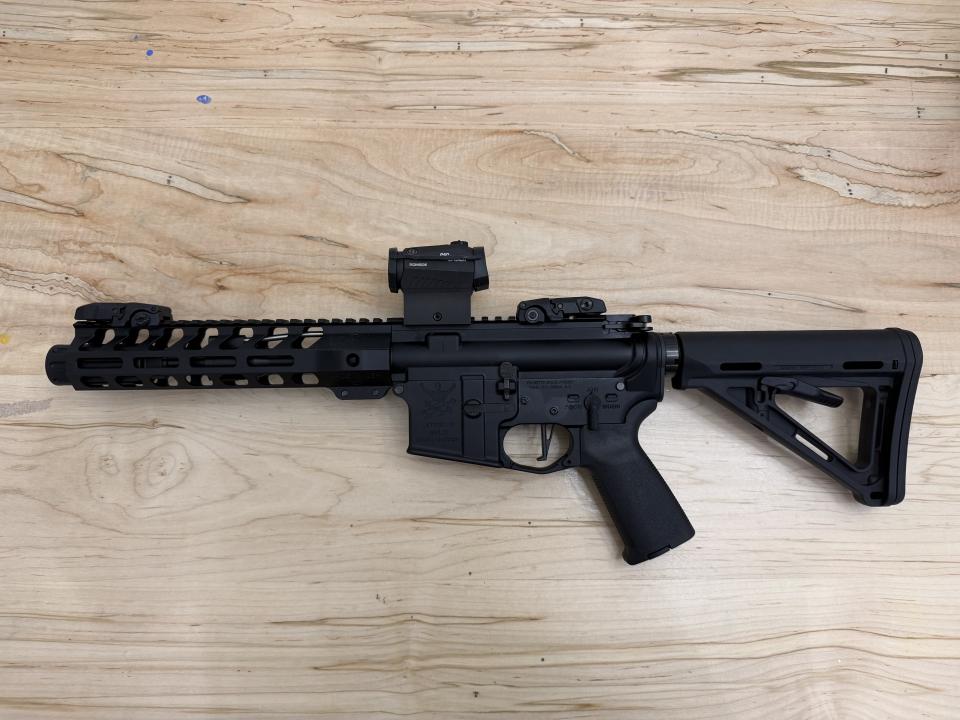1 magazine, Stock not included as this is a pistol but can be purchased separate for $40 for your next rifle build.
