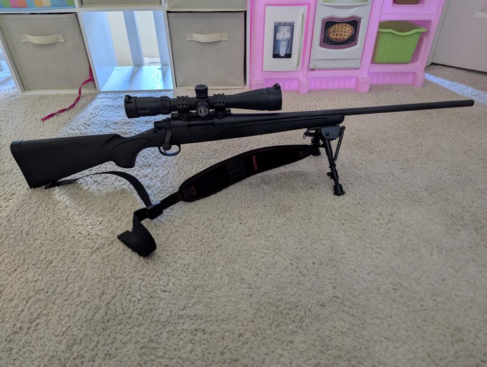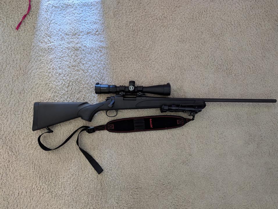 $800 OBO. (Or willing to trade for a older good running fourwheeler.) Remington 700 chambered in .308. it's basically brand new only put 1 box of Hornady .308 through it. It has a internal magazine, a Bushnell scope that has great clarity can't remember the exact model, a sling and a bipod.