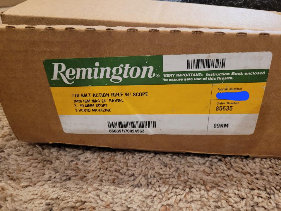 New in box, never fired Remington 770 Bolt Action 7mm Rem-Mag 24" with 3x9x40 scope.