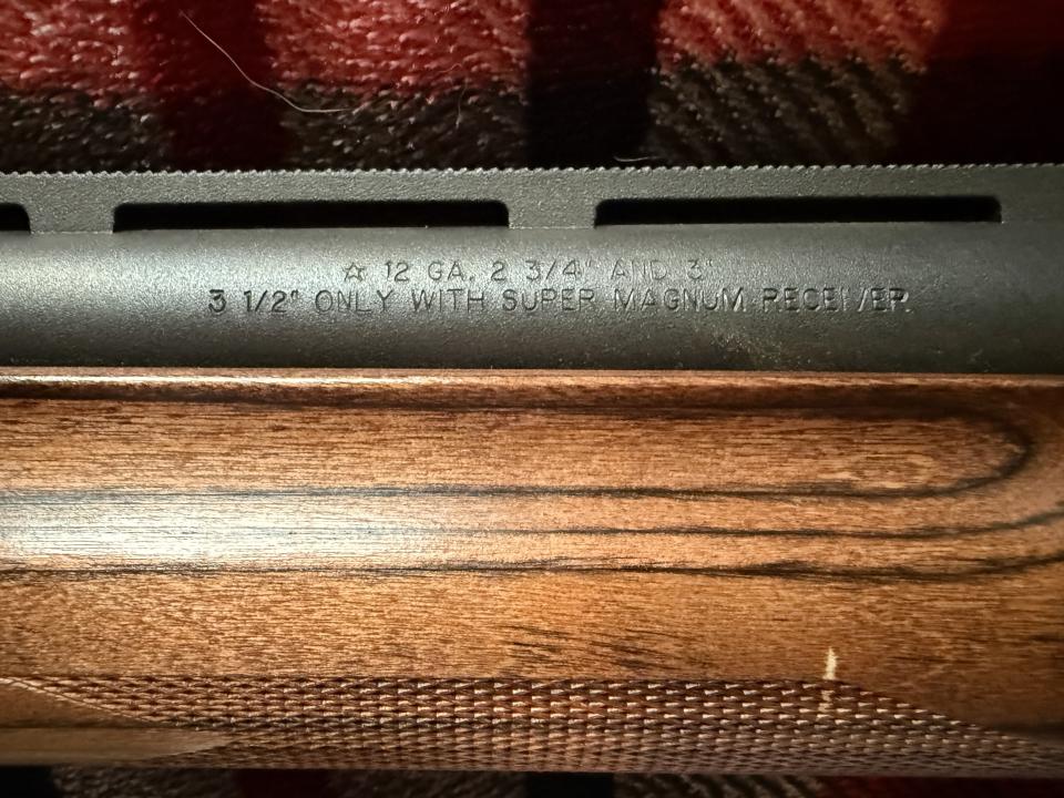 Shoots all the way up to 3 1/2” shells for the big birds. Has the original Remington modified choke installed.