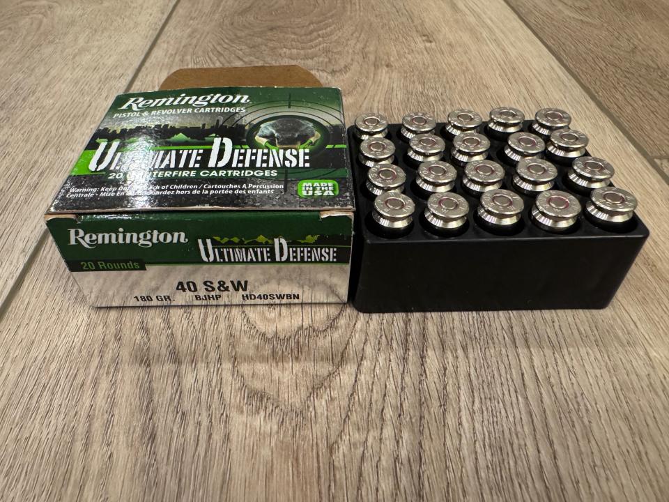 Ammo & Reloading New box of 20 Remington Ultimate Defense 40 S&W bullets. 180 Grain BJHP. These will defiantly stop and intruder. I no longer have this caliper of gun. *I have other 40 S&W listings if you are interested Log in or register to post comments