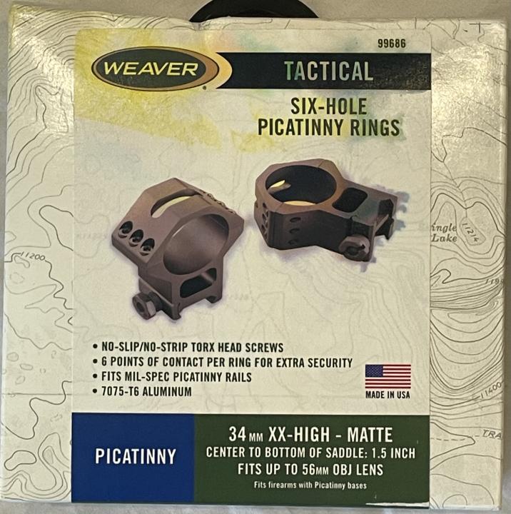 Rings - Weaver Tactical, 6 hole Picatinny, 34 mm MSRP $115