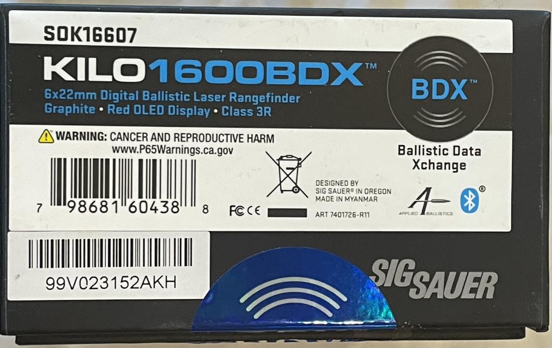 Range Finder - Sig Sauer, Kilo3K BDX, 6 x 22 MSRP $349