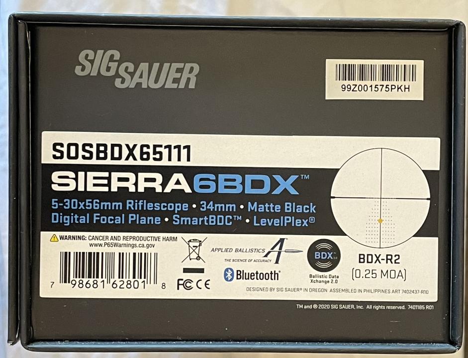 Scope - Sig Sauer, Sierra 6 BDX, 5x30 SFP MSRP $1449