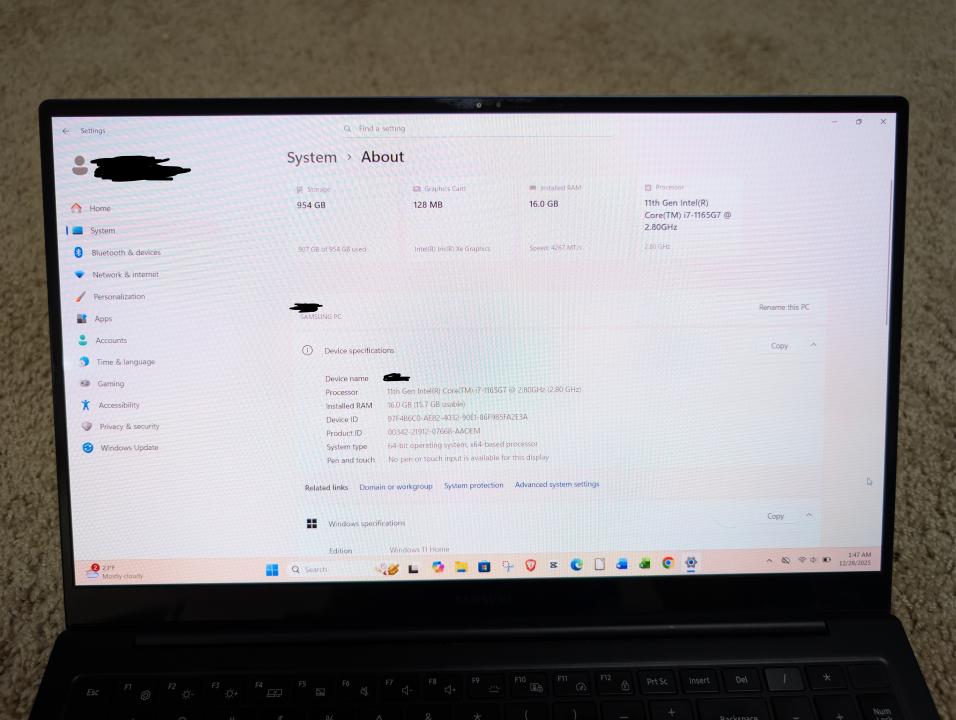 This computer has 1 TB SSD, 16G RAM, an Intel i7 processor, and runs windows 11.
