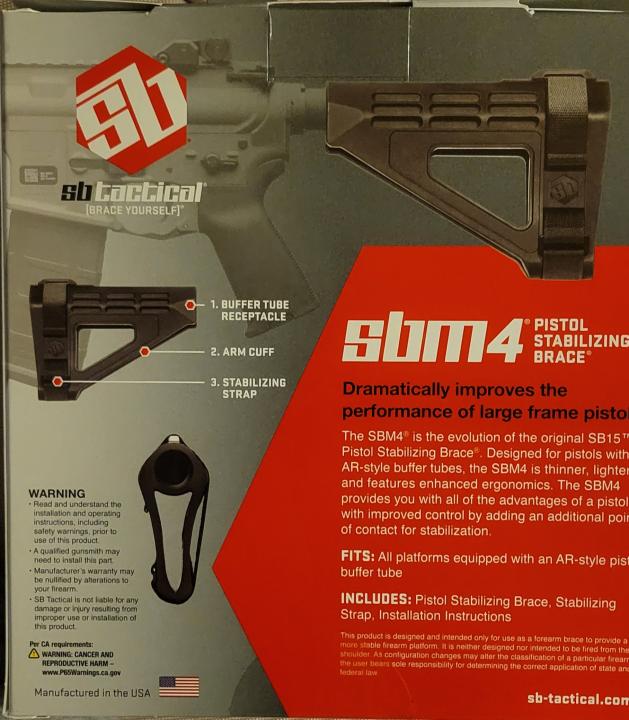 Selling a NIB SB Tactical SBM4 brace for AR pistols. Will not work with milspec adjustable buffer tubes. Email me at [email protected] or text at 2zero8 2four9 6 five five 3.
