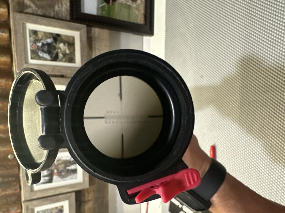 Firearms & Hunting Great scope Barley used Mint condition Custom reticle Scope rings and bubble level included 5-25x56 MOA Turret Log in or register to post comments