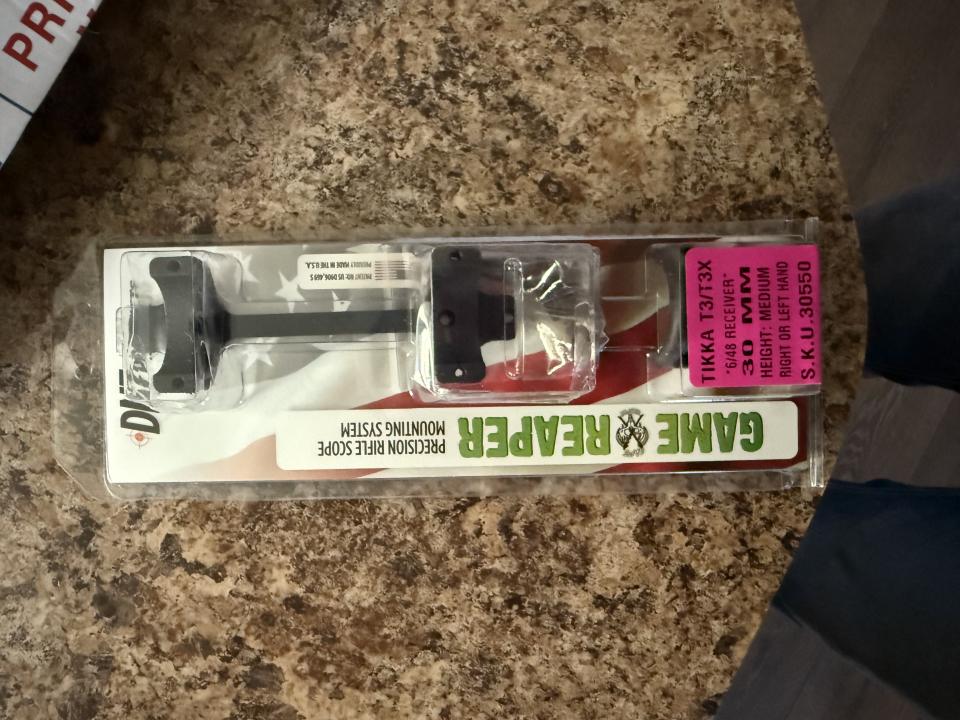 Hunting Accessories I have a scope mount for a tikka t3/t3x 30mm medium rise. Bought but didn’t show up in time so I went a different route. Showed up today, pulled out of packaging and posted. Brand new never opened. $80 obo 208-932-5394 Log in or register to post comments Bought and never opened Bought and never opened Sat, 10/11/2025 - 21:31 TysonM4151 Log in or register to post comments