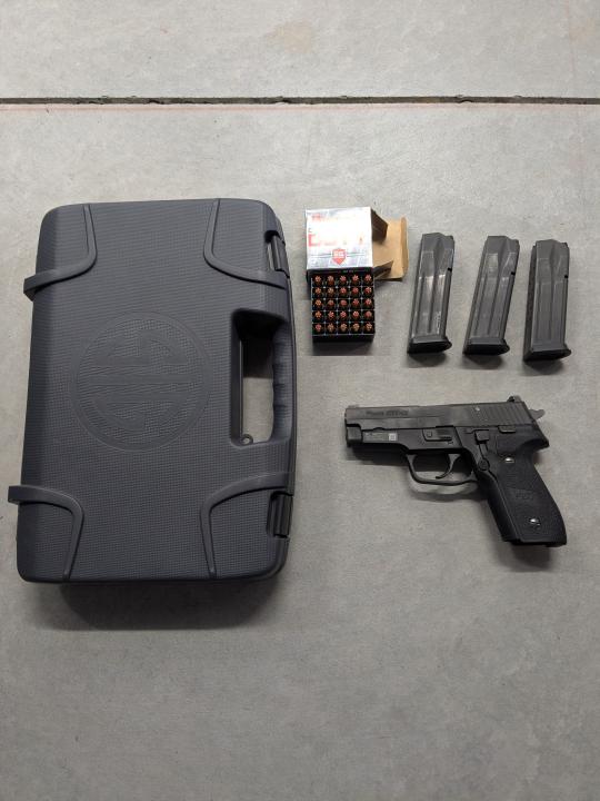 Firearms & Hunting -Sig Sauer M11-A1 (P229) --About 100-200 rounds fired --Only owned it half a year -3 Sig Sauer magazines (came with firearm) -Sig Sauer hard case (also came with firearm) -Hornady Critical Duty ammo (25 rounds) Log in or register to post comments