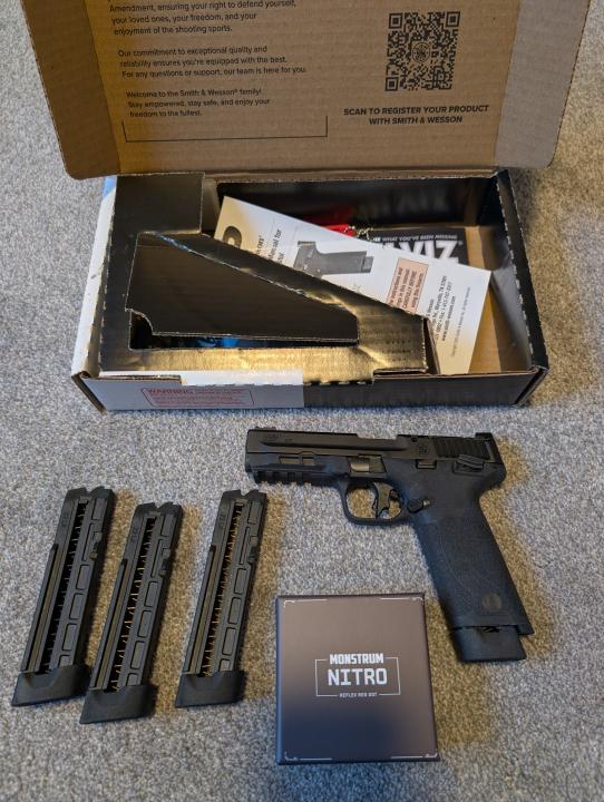 Comes with 4 20 round magazines (2 original in box and 2 more purchased later) and a Monstrum Nitro V2 Optic. Has all original parts, papers, box, etc.
