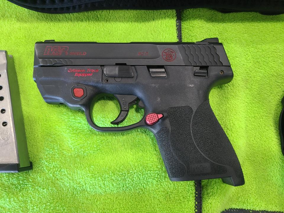 Smith & Wesson M&P Shield 2.0 9mm w/Crimson Trace Laser, 2 magazines, and 2 holsters.