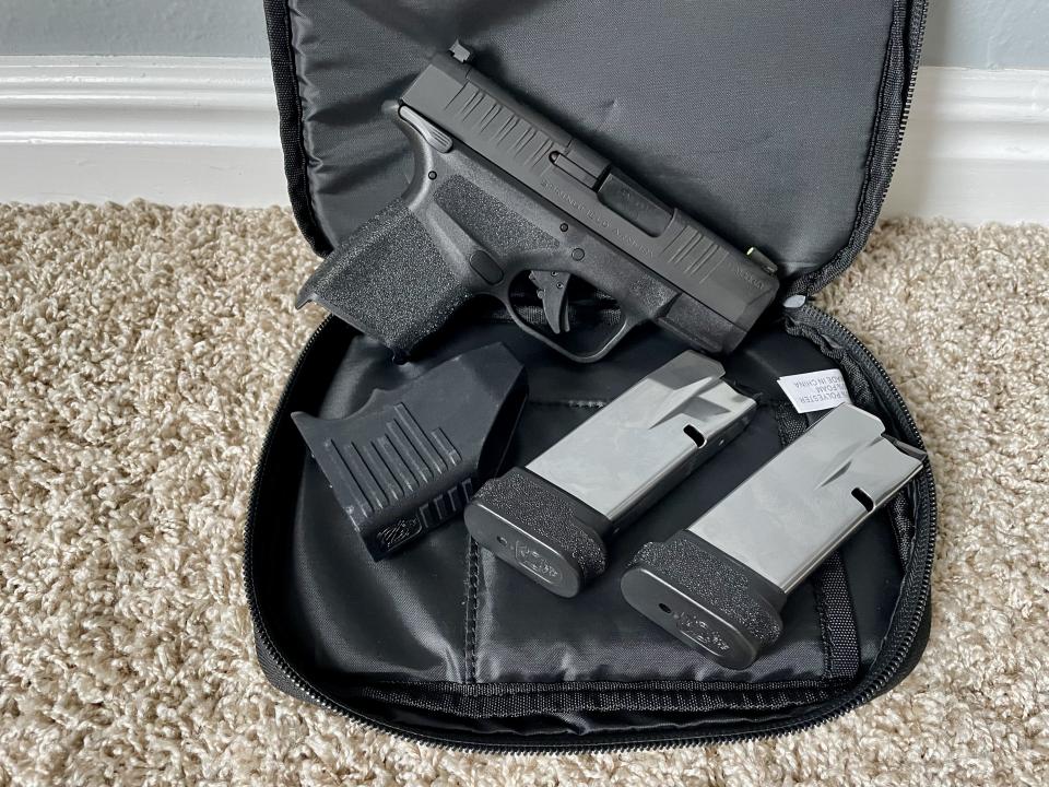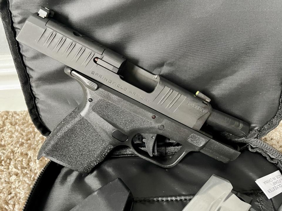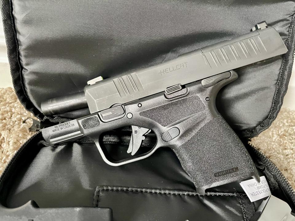 Springfield Armory Hellcat 9mm. It is practically brand new. I’ve only fired a couple magazines through it. I own two of them and don’t need both. I love the Hellcat because of its conceal ability, 13+1 capacity cut outs for sites, and a pic rail for attachments. Comes with the original soft case, two magazines and a magazine ez loader.
