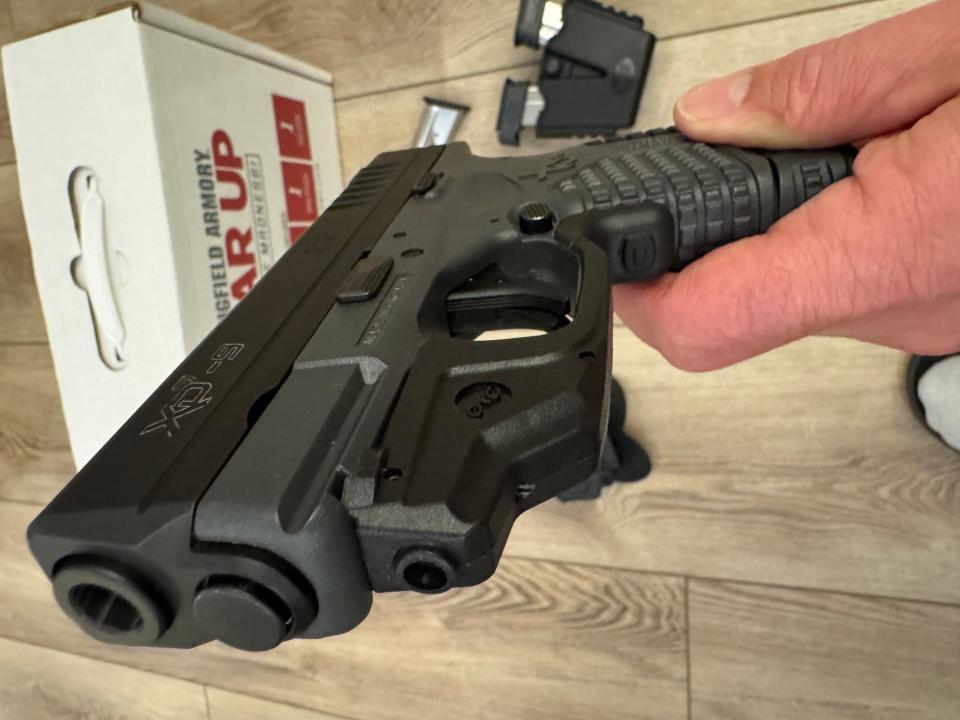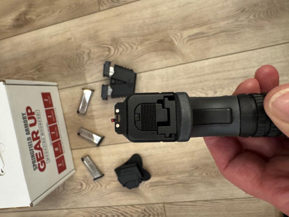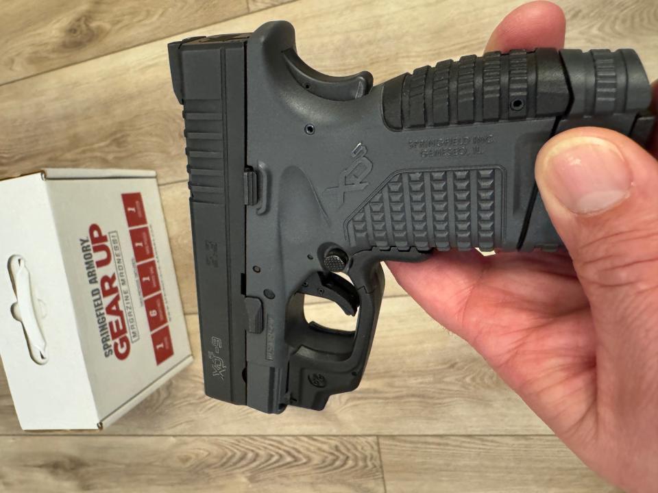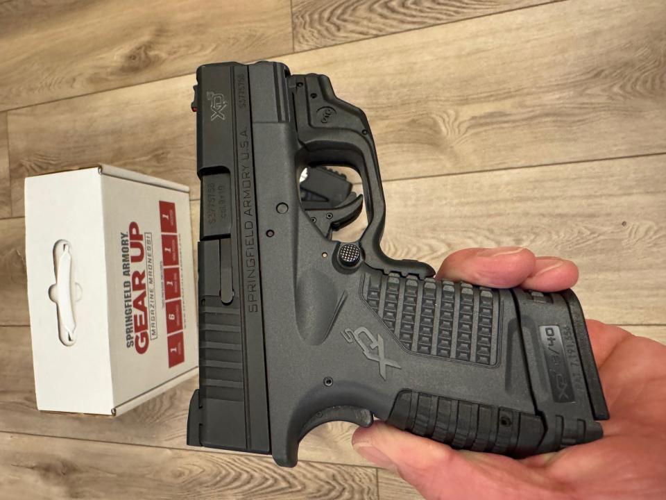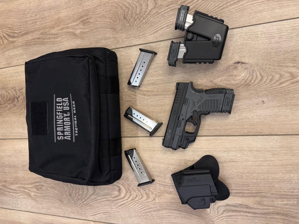 This is a great concealed carry gun. I’ve used this in my ankle holster and a waistband holster and both are undetectable. It has been well taken care of and has not been abused. Still in fantastic condition. I have all the original paperwork, box, bag, 6 magazines (with holder), holster and finger extenders for the shorter mags. It has a CTC (Crimson Trace) laser on it as well.
