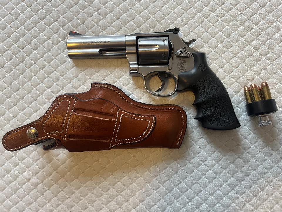 Firearms & Hunting Comes with a leather holster, and 2 speed reloaders Log in or register to post comments What model is this? What model is this? Mon, 01/26/2026 - 17:49 Ferrelkid Log in or register to post comments Looks like a 4" 686. Is it… Looks like a 4" 686. Is it 6 or 7 shot? Mon, 01/26/2026 - 21:40 jkbrea In reply to What model is this? by Ferrelkid Log in or register to post comments Looks like 5 0r 6 shot Looks like 5 0r 6 shot Mon, 01/26/2026 - 21:43 Ferrelkid In reply to Looks like a 4" 686. Is it… by jkbrea Log in or register to post comments