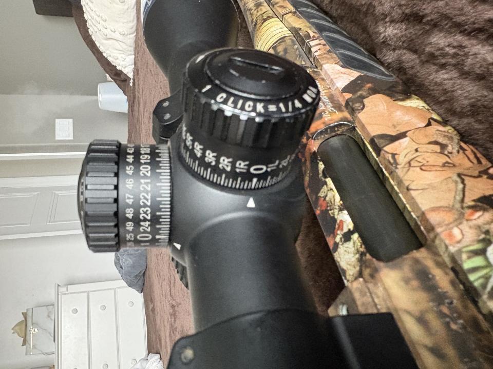 Set up with adjustable elevation and windage turrets and full compensation chart.