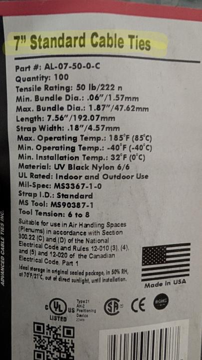 7" cable ties (2 bags of 100 pcs): $6