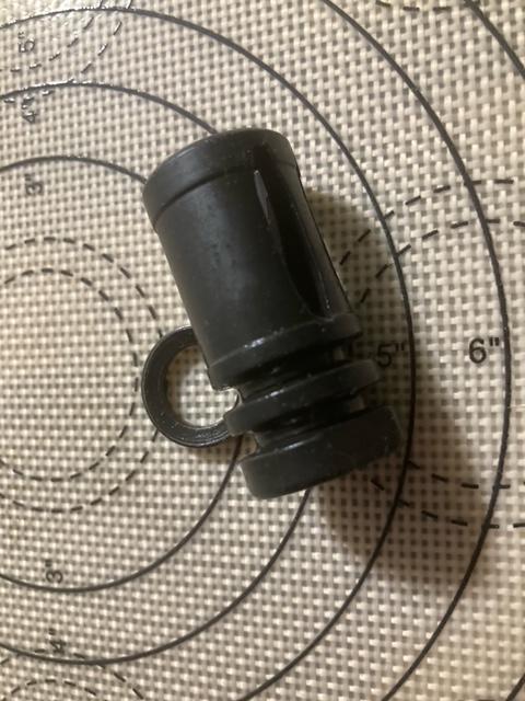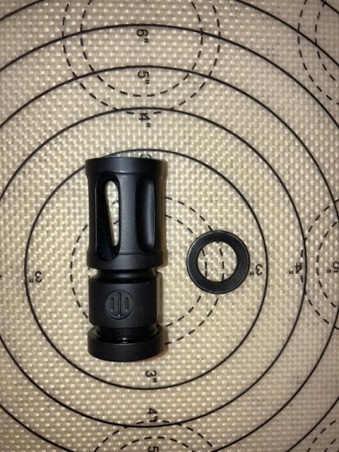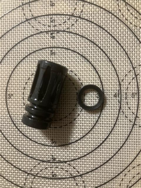 PWS muzzle device with never used pin and weld hole, 1/2 x 28. 3 open and 3 closed slots to combine flash suppression and recoil control designs. Includes USED crush washer. Advertised as compatible with gemtech halo (a1 / a2 flash hider) suppressor mounts. $30 cash, i'll throw in a box of .223 ammo and PA hat with PWS md.