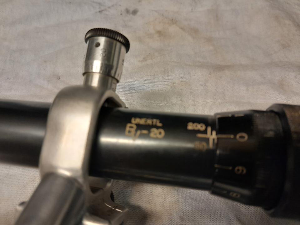 UNERTLE BV 20 scope. Perfect target Scope. Small ding (pictured). Very fine horse mane style cross hairs.