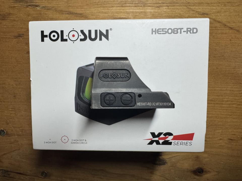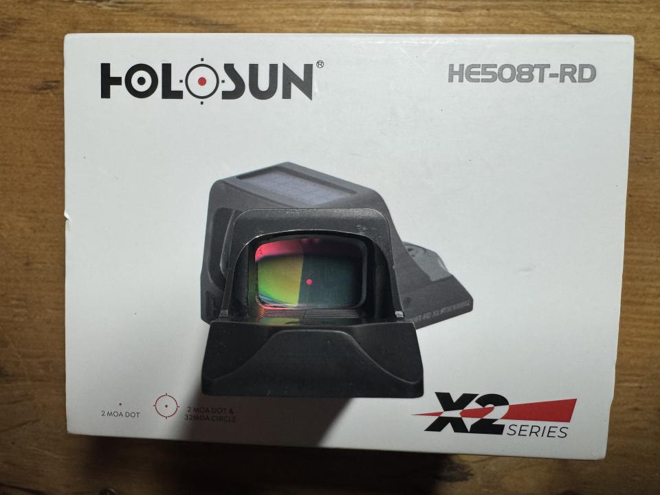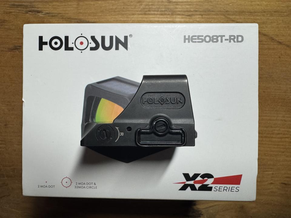 Holosun 508T red dot with full titanium housing, solar backup, optional 32moa ring with 2moa dot. Fits the Trijicon RMR footprint. Clean glass and in good condition.