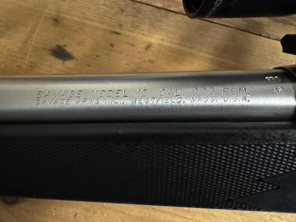 Older Savage Model 12 FVSS bull barrel 223 Accutrigger with a weaver rail. Has the cheaper nylon stock, but would be a great fit for a chassis down the line with the heavy barrel. Does not include Vortex scope.