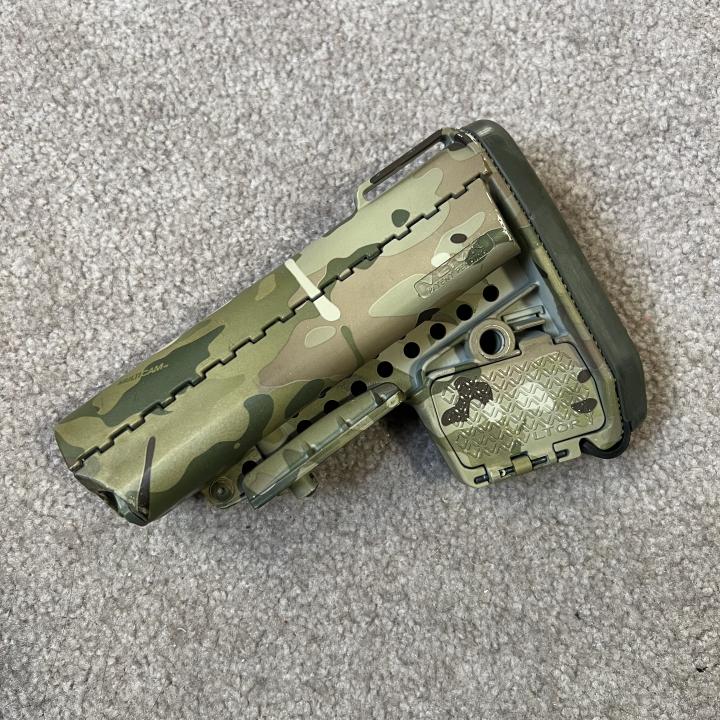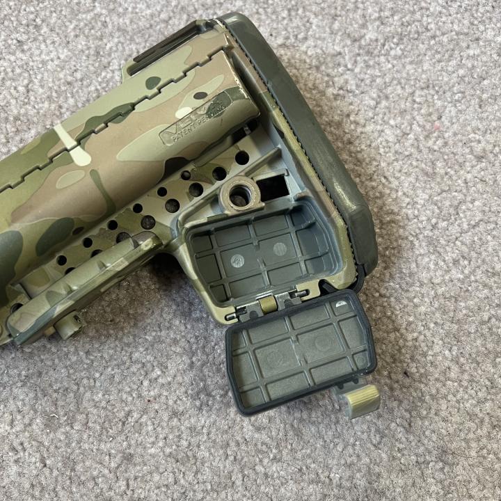 This VLTOR EMOD (enhanced modular stock) is in the limited run, unobtanium multicam and is in great used condition. Dual storage tubes and battery door. Local Idaho Falls meet up. Comes from a smoke-free home. More info here: https://www.vltor.com/shop/ar/stocks/emod-enhanced-modular-stock/