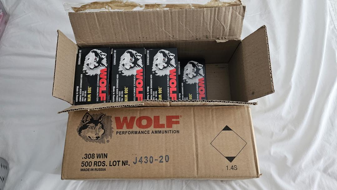 Firearms & Hunting Wolf Steel Cased 308 Ammunition $12 per box. If interested you can text or call me at (208)709-6403. I am located in Idaho Falls. Cash only first come first serve. Log in or register to post comments