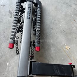 Hitch mount bike rack that holds four bikes and swings out of the way for full access to bed of truck or other vehicle. Fold down when not in use. Bottle openers on both arms cable lock system built in. In great condition. Including locking hitch pin. This is perfect four family outings.