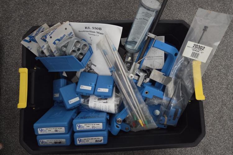 This is a Dillon 550B with everything required to start reloading the most popular pistol calibers.
