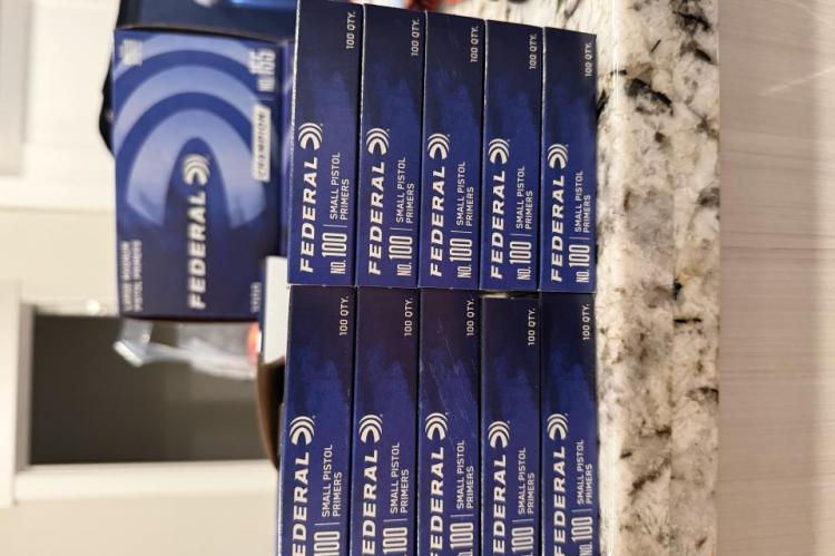 Federal small pistol primers. $50 for the box of 1000