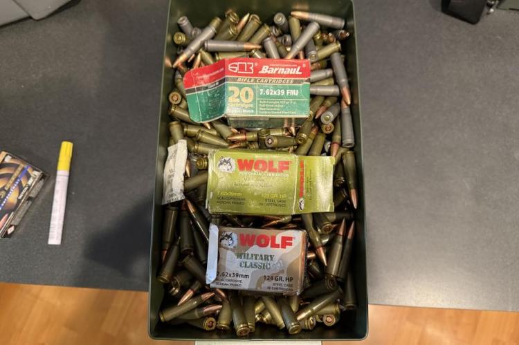 Here we have ROUGHLY 2200 rounds of 7.62x39. Some steel, lots of brass with coating. Quite of bit of