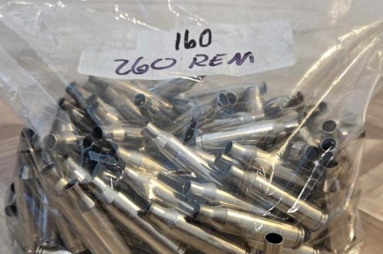 160 nickel plated once fired 260 Rem brass. These are all from Federal Premium cartridges. Not