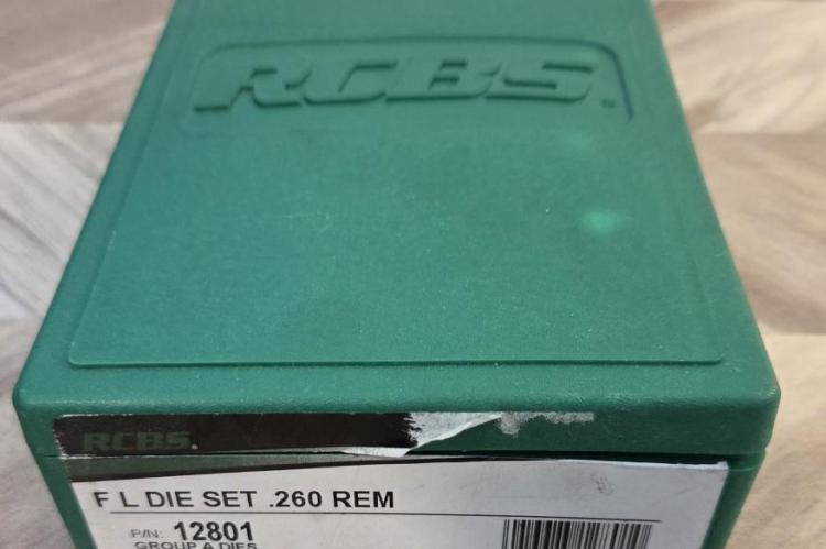Used - good condition. Set includes full length sizing die, neck sizing die, and bullet seater. Also