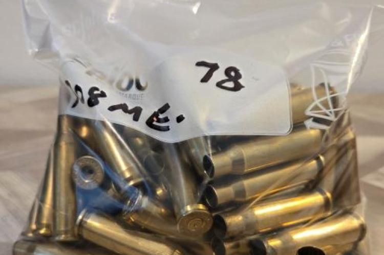 78 used brass, fired once, uncleaned (some primers removed) & not sized. The ones with the primers