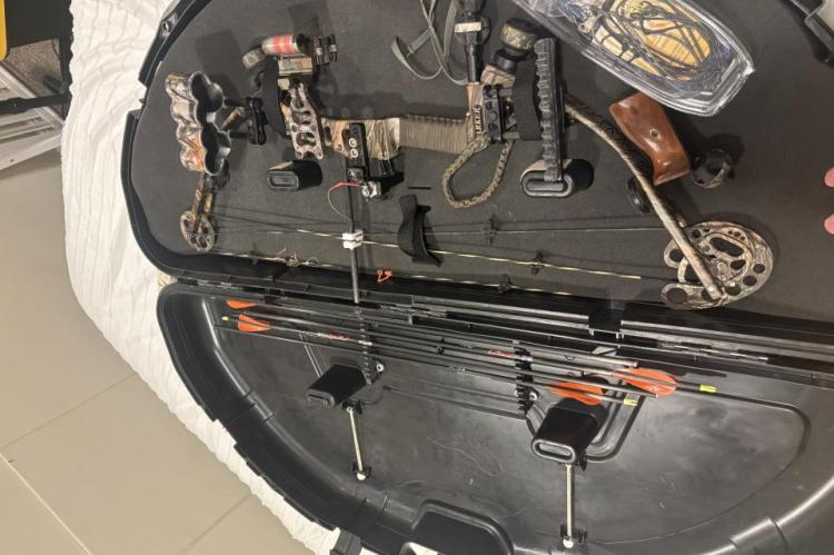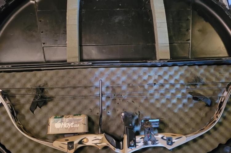 The bow comes with the case, release, fuzzy 100gr broad heads, some field points. It's in good shape