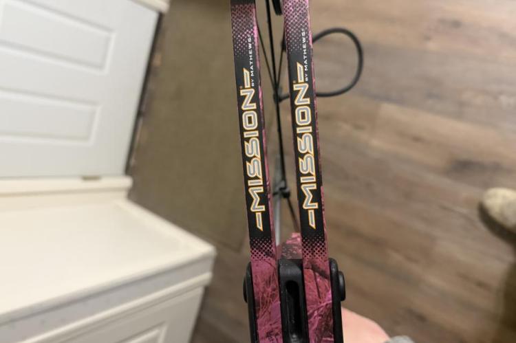 Mission craze pink camo bow. Gf grew out of it and now it just sits around .draw length is 19 to