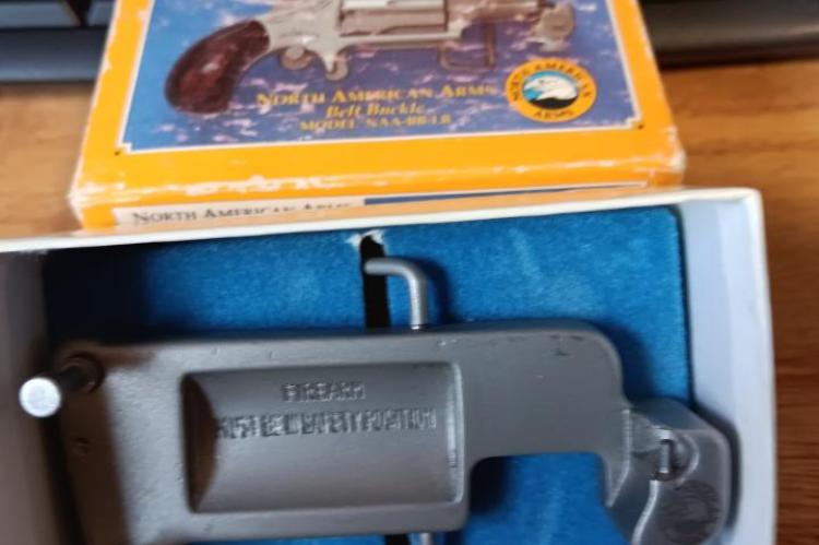 North American Arms Mod. NAA-BB-LR mini 22 cal. revolver belt buckle holder. Rare, especially this
