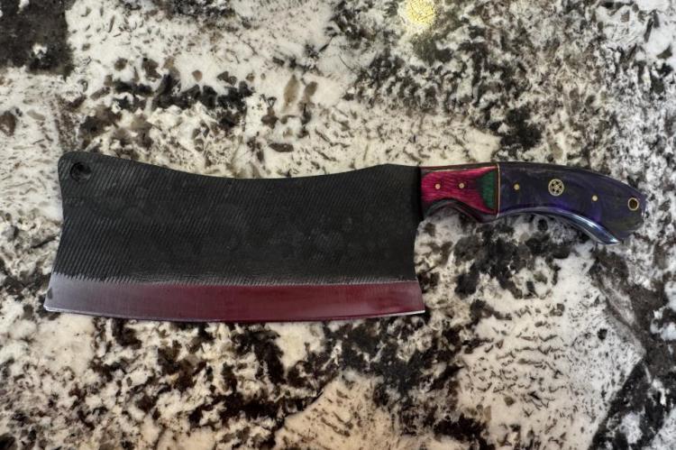 Steel cleaver with 7” blade. Sheath included