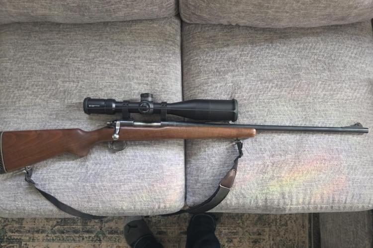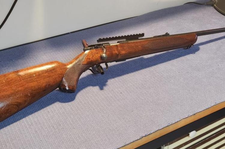 Winchester 1954 M75 sporting 22lr with the swept back bolt drilled and tapped with egw rail on for