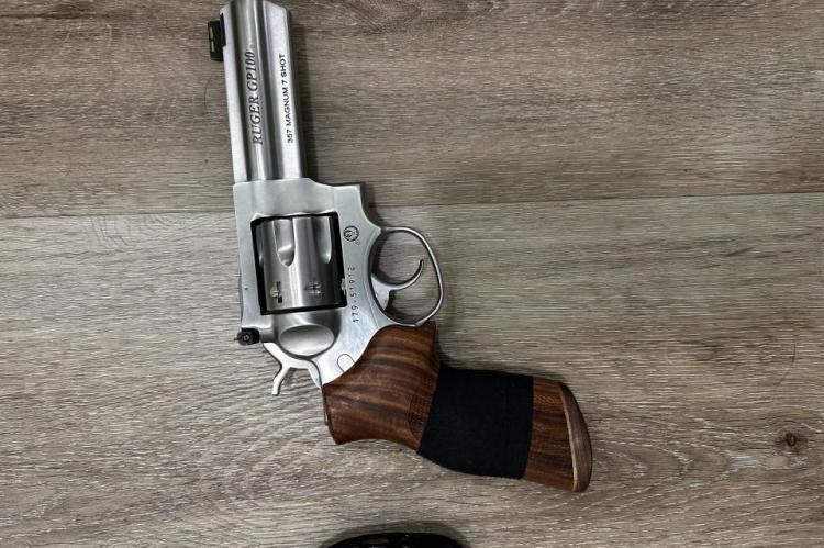 4.20" barrel. 7 shot. Black rubber Hogue grip. Hogue wood grips. 10 lbs trigger spring installed
