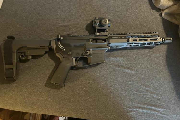 Sig ar 15, can shoot 223 or 5.56 and comes with a vortex strike fire 2 green dot. Also will come