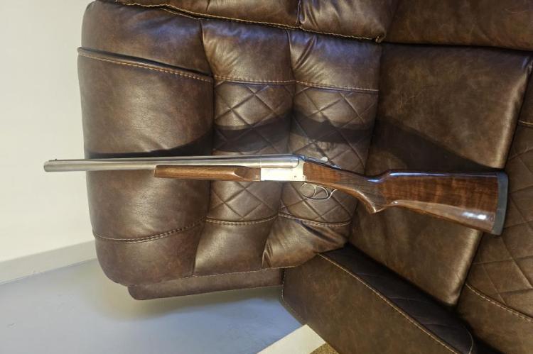 12ga double barrel nickel plated, this gun is a blast to shoot and has removeable chokes! Has a
