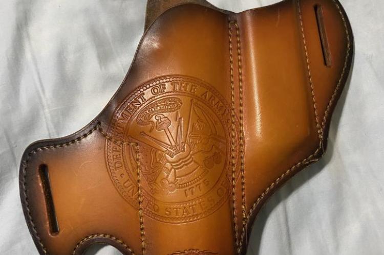 Savoy 1911 with mag outside right hand with the United States Army insignia
