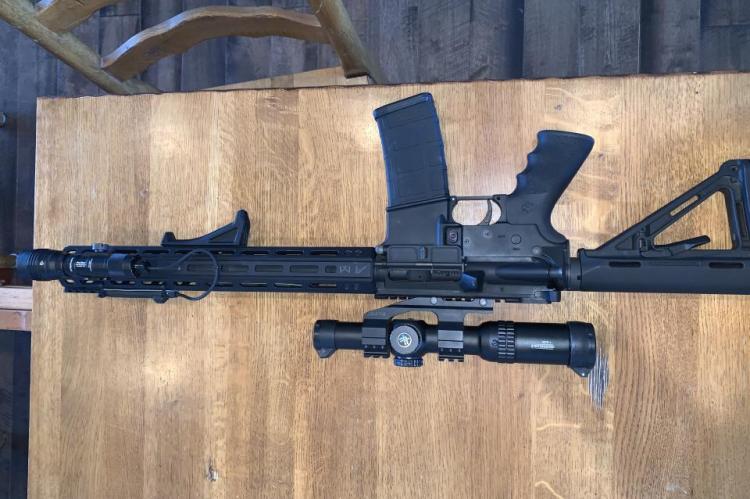 Listed is my Bushmaster XM-15, which has a few upgrades. This rifle has a 16-inch barrel, an added