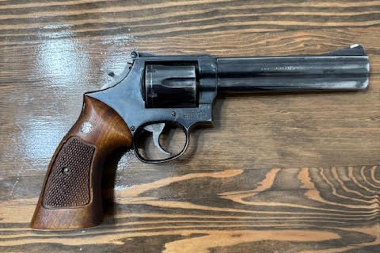 S&W 586 .357 Magnum with the 6 inch barrel. Great pistol Goes bang when you pull the trigger just a