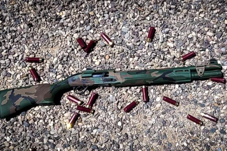 Beretta a300 ultima patrol, cerakoted M81 woodland. Comes with 2 esstac 7 round shotgun cards and