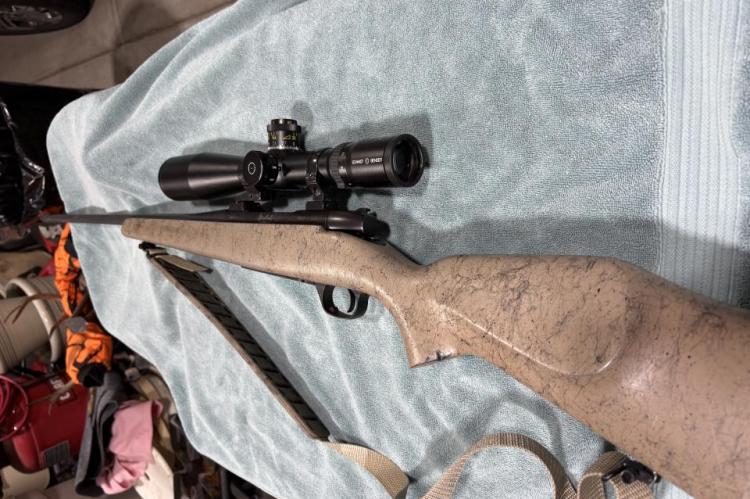 300 Weatherby mark 5 looks brand new other than the mark on the bottom of the grip. Scope is not